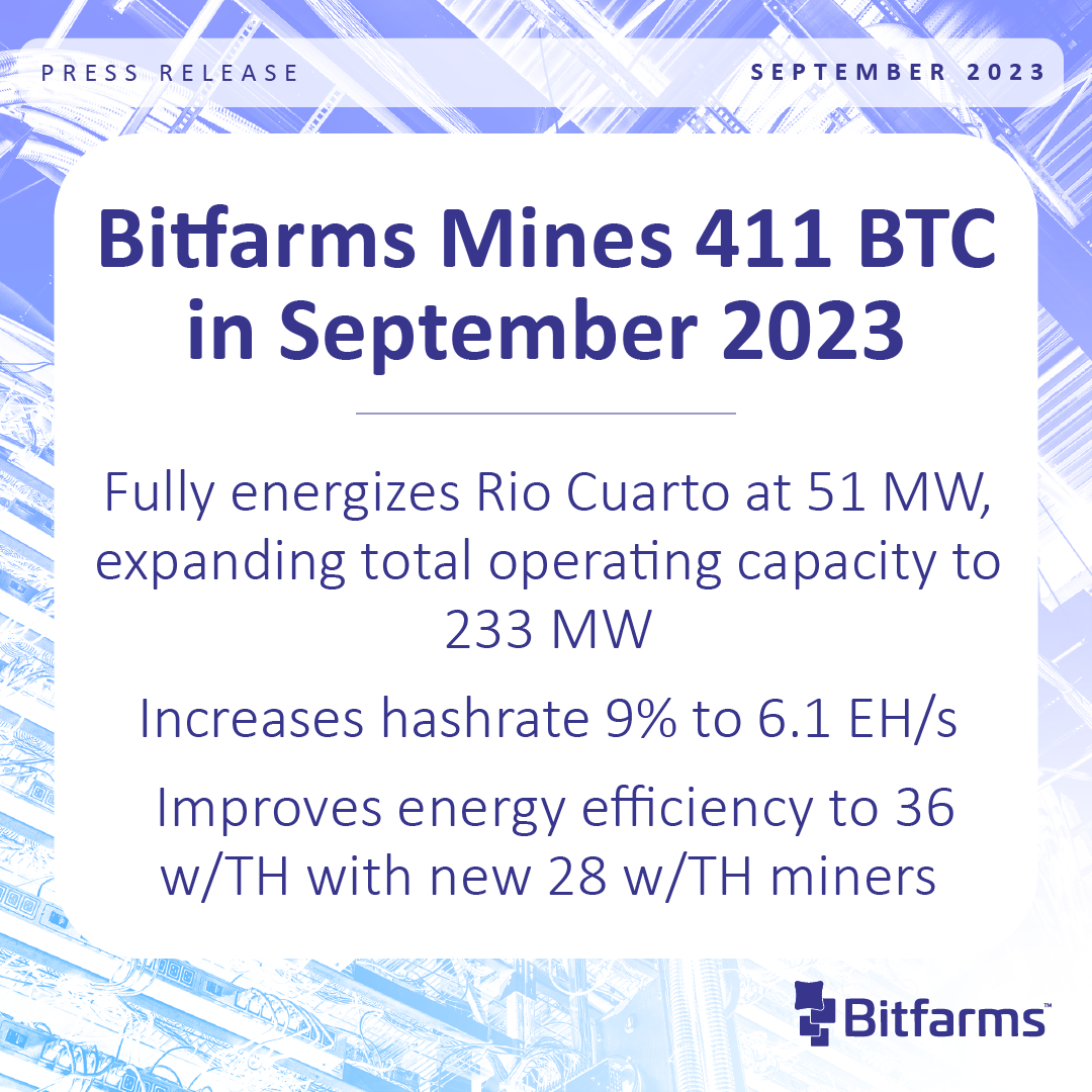 Bitfarms Mines 411 BTC in September 2023