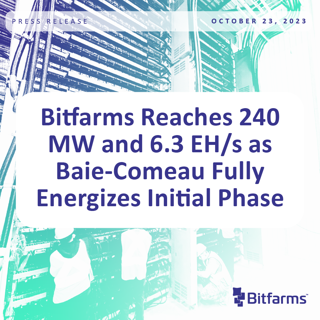 Bitfarms Reaches 240 MW and 6.3 EH/s as Baie-Comeau Fully Energizes Initial Phase
