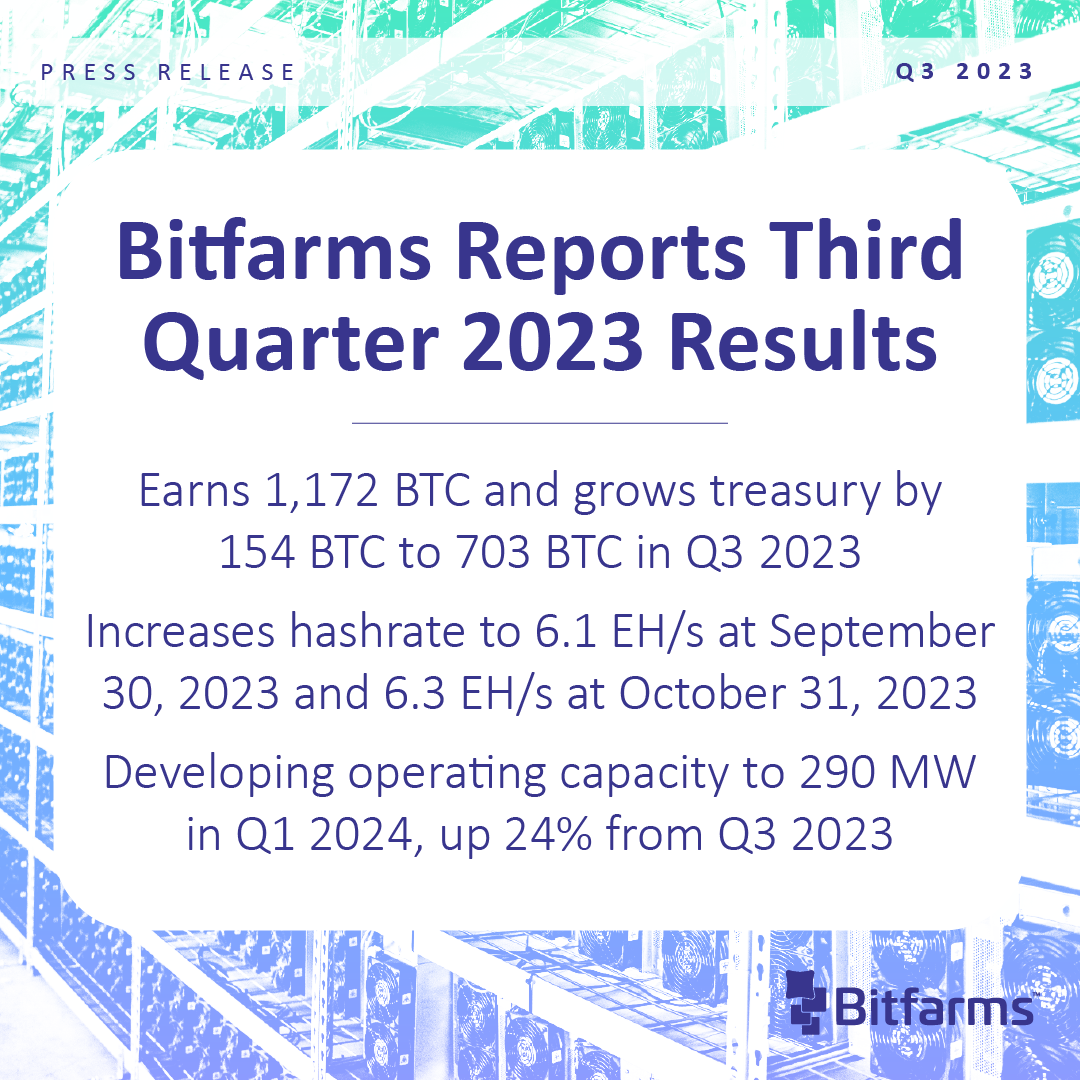 Bitfarms Reports Third Quarter 2023 Results