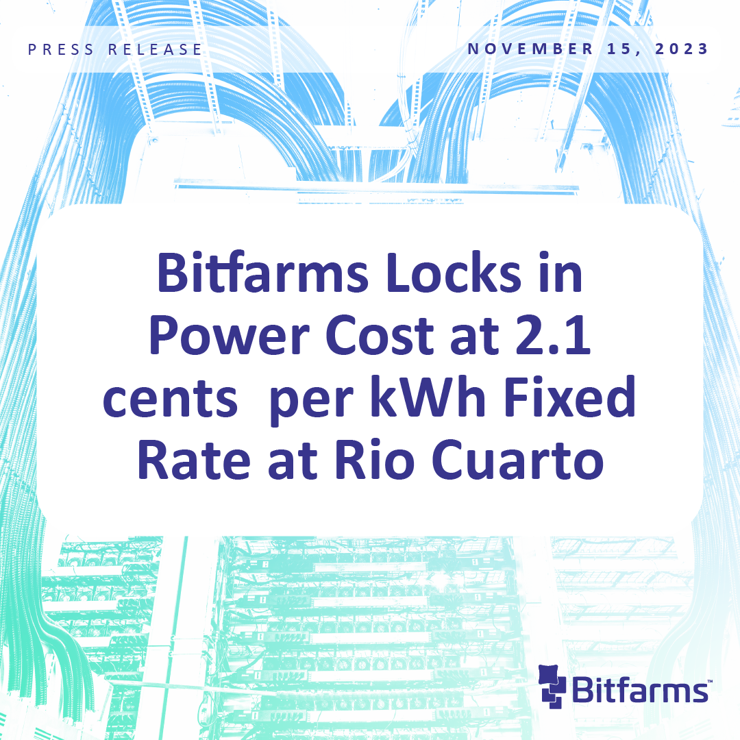 Bitfarms Locks in Power Cost at 2.1 cents per kWh Fixed Rate at Rio Cuarto